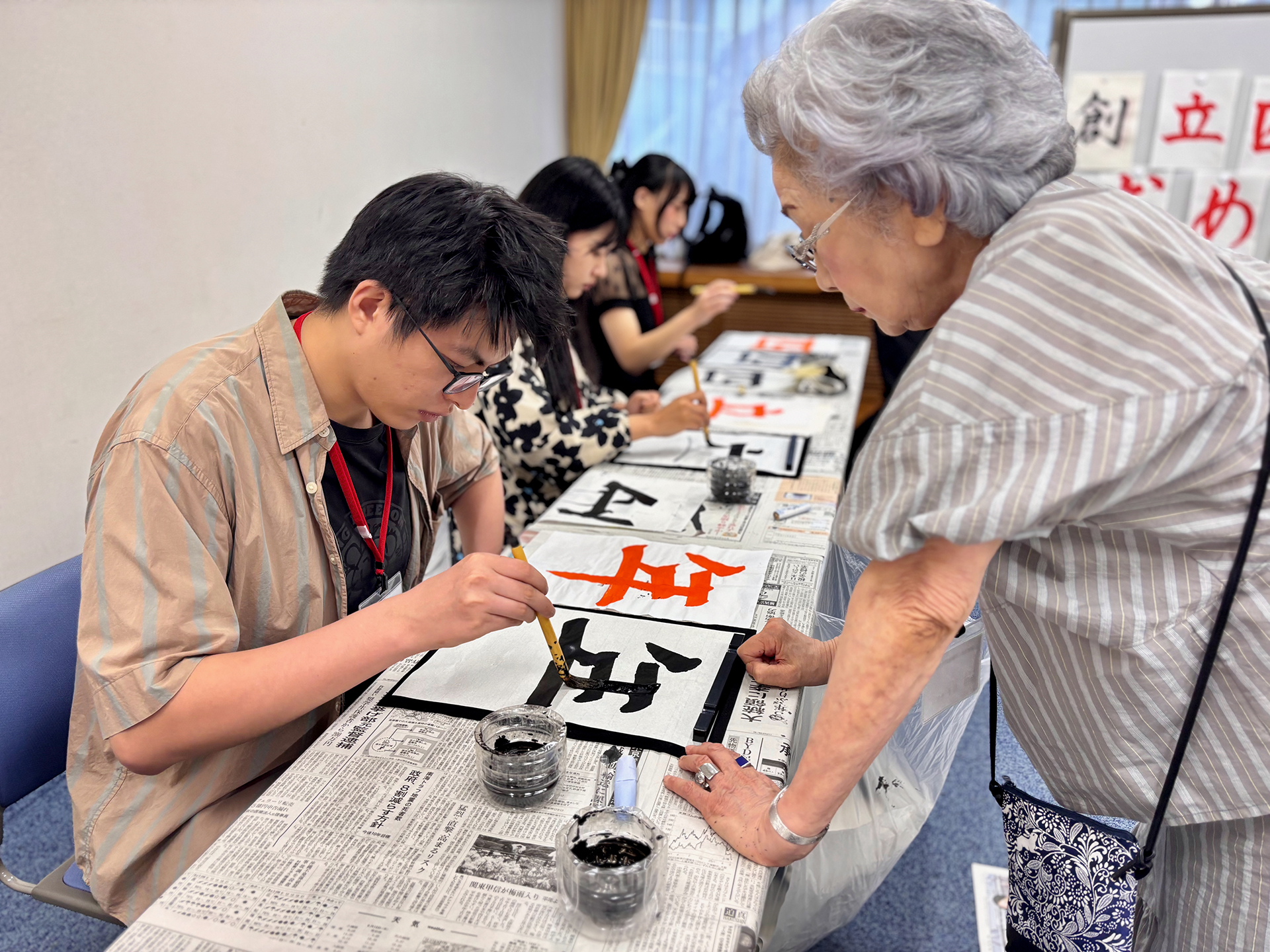 金田昌子前理事長によるお習字教室(2025年7月)