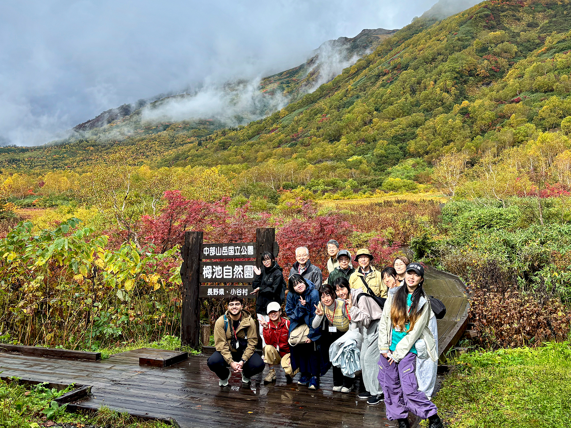 鮮やかな秋色に染まった栂池自然園にて(2025年10月)